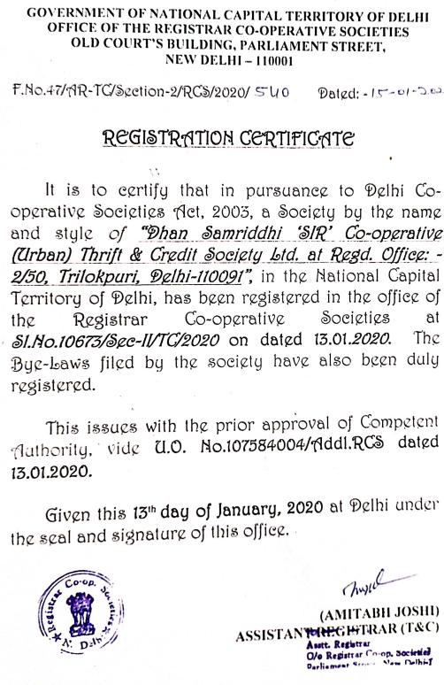 Dhan Samriddhi Sir Co-operative T/c Society Ltd.